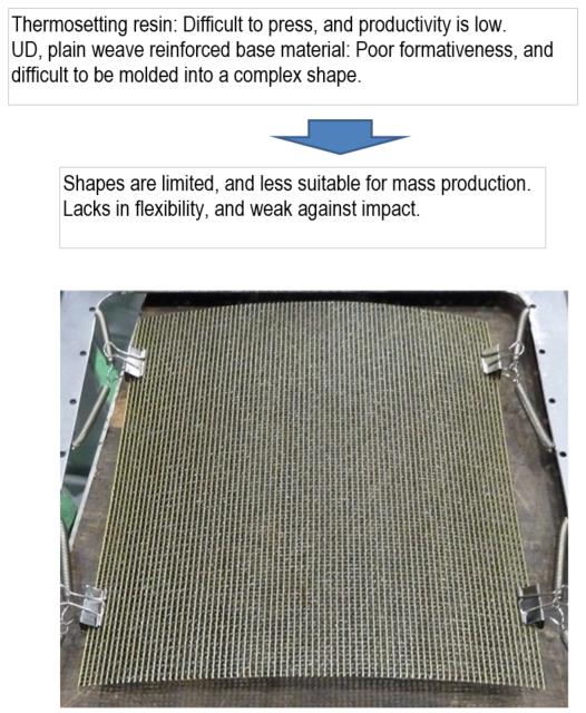 Since the product uses a knit fabric as the reinforcement base material and a thermoplastic resin as the matrix, it excels in pressworkability and can be worked into a complex shape such as deep drawing. While having lightweight/high-rigidity characteristicsof carbon fiber composites, it also has breathability and flexibility of mesh material. The company succeeded in impregnating aknit-reinforced base material with a thermoplastic resin, which was previously difficult to achieve, by using a special thermoplasticresin.