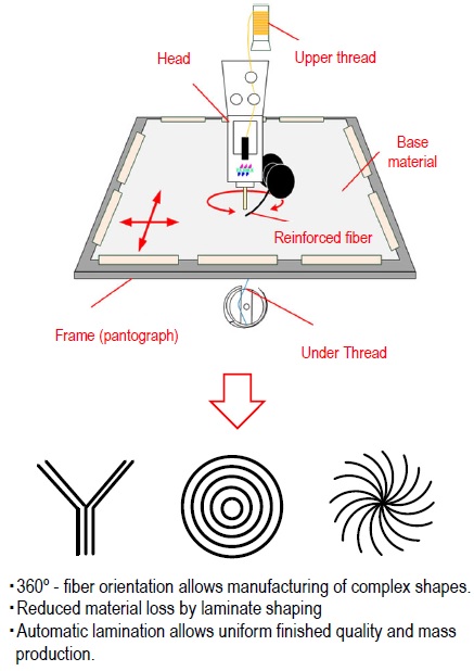 ・Reinforced fibers can be orientated in any direction of 360°.