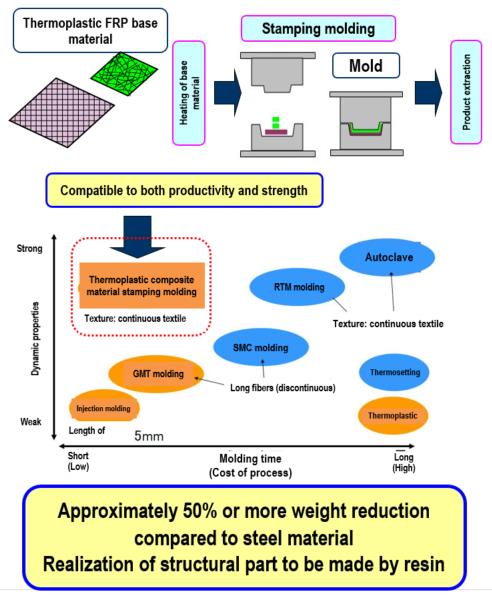 Development of high-speed stamping molding method for thermoplastic resin composite material