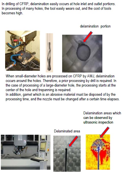 ・It is possible to drill a large amount of small diameter holes in CFRP at a low cost by blasting
