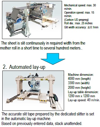 ・CF prepreg process of aircraft structural parts and automobile structure materials as well as exterior sheet parts.