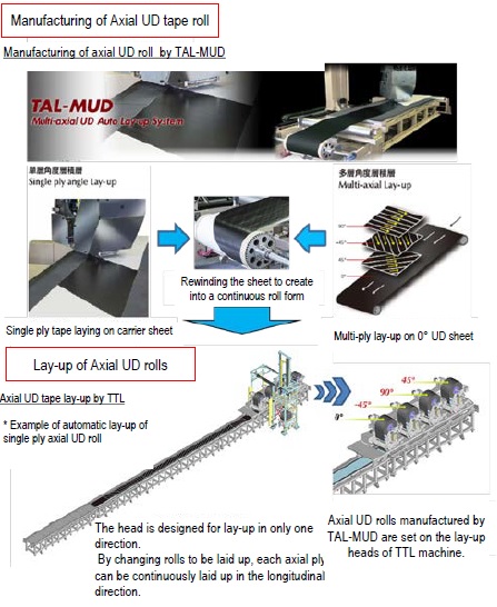 Axial UD roll is produced off-line (out of manufacturing line) and supplied as base material to the manufacturing line process.Establishment of a supply chain for manufacturing and selling axial UD rolls