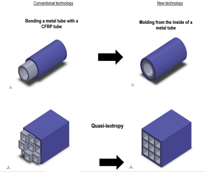 ・Beneficial effects can be obtained by molding CFRP from the inside of an off-the-shelf metal tube.