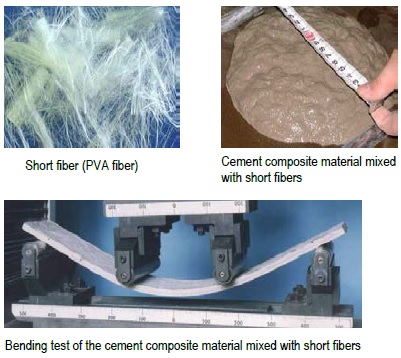 ・Although the cement composite materials mixed with PE fiber, PVA fiber and steel fiber as short fibers are used in civil engineering and architecture, the cement composite material mixed with carbon fiber isused a little.
