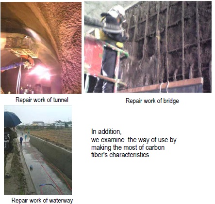・Using the developed cement composite material mixed with waste carbon fiber for repairing and reinforcing materials in civil engineering and architecture field.Usage part (proposed)