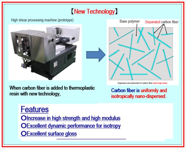 ・With the developed high shear processing method, agglomeration of carbon fibers were released, and uniform and isotropic dispersion became possible in the base polymer.
