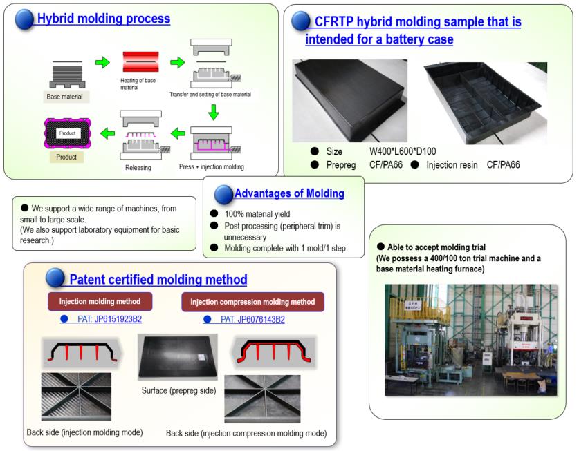 ・ Hybrid molding of thermoplastic resin impregnated continuous fibers and discontinuous fibers (press + injection molding)