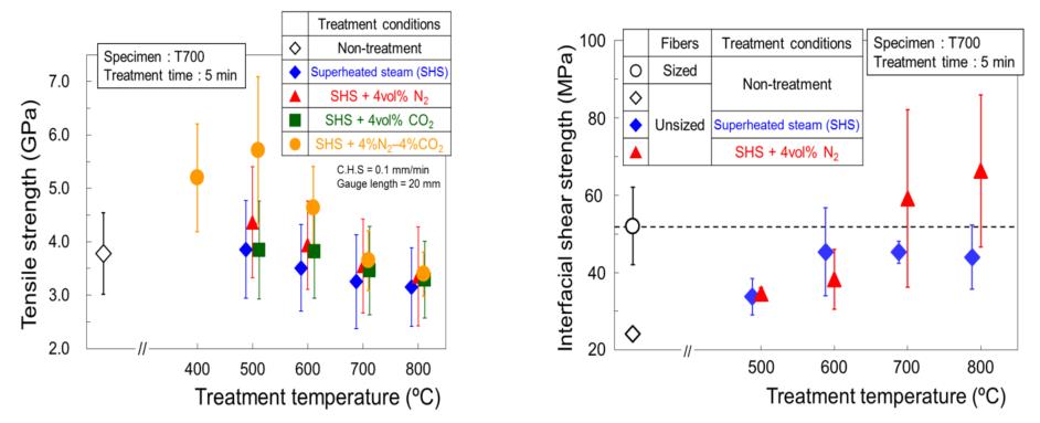 ・ SHS treatment with process gas (N2, etc) enables the surface modification of fibers (improvement in adhesion between fiber and resin, increase in fiber strength).