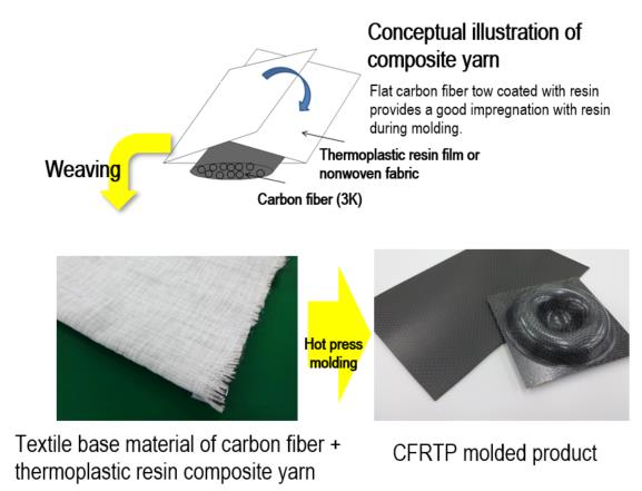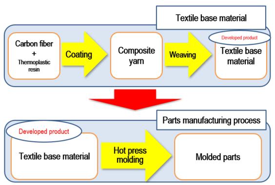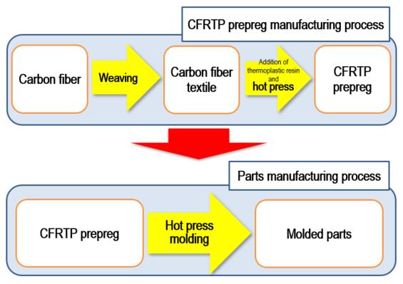 ・CFRTP part can be molded directly from the textile base material, and no manufacturing process of CFRTP prepreg is required.
