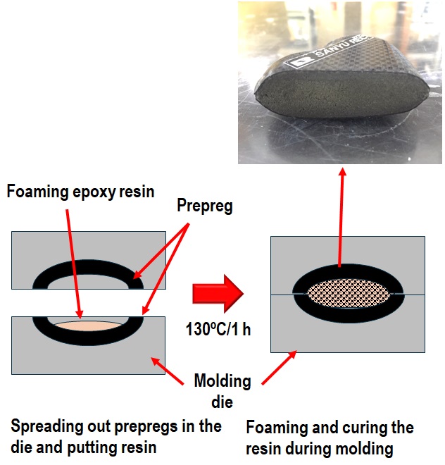 ・High-strength foam can be obtained through integral molding together with prepreg.