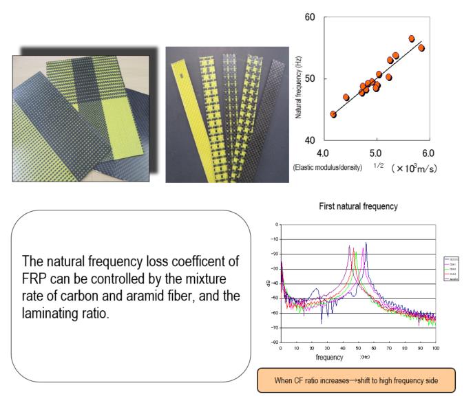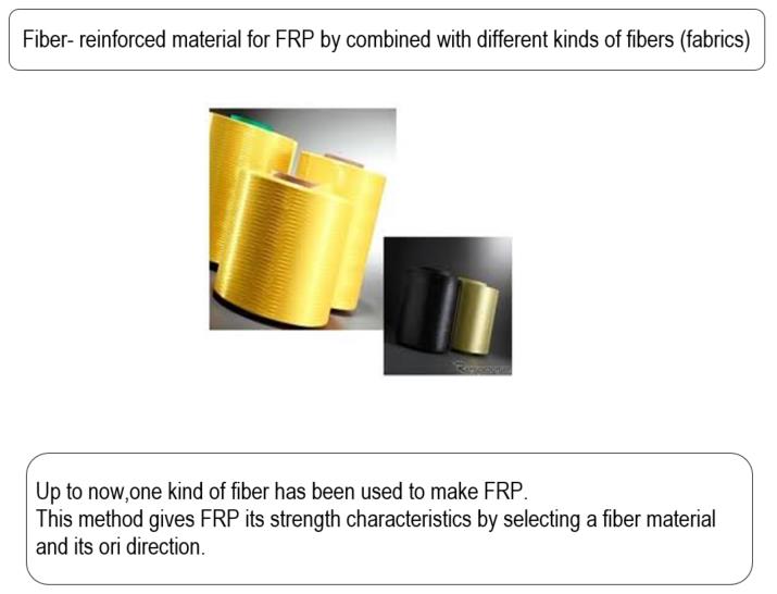 Required strength and vibration characteristics of fiber-reinforced plastic (FRP) can besigned by using two kinds of fibers which have differenet characteristics, such as carbon and aramid fiber.