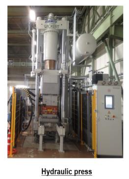A high-accuracy hydraulic press that performs molding while maintaining a micron-order (<25 μm/m) parallelism.